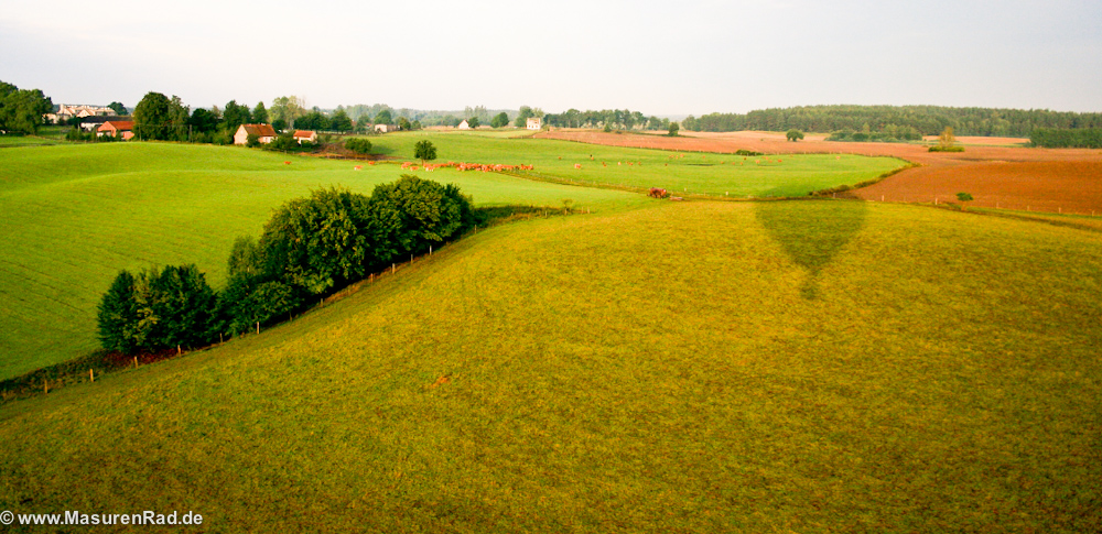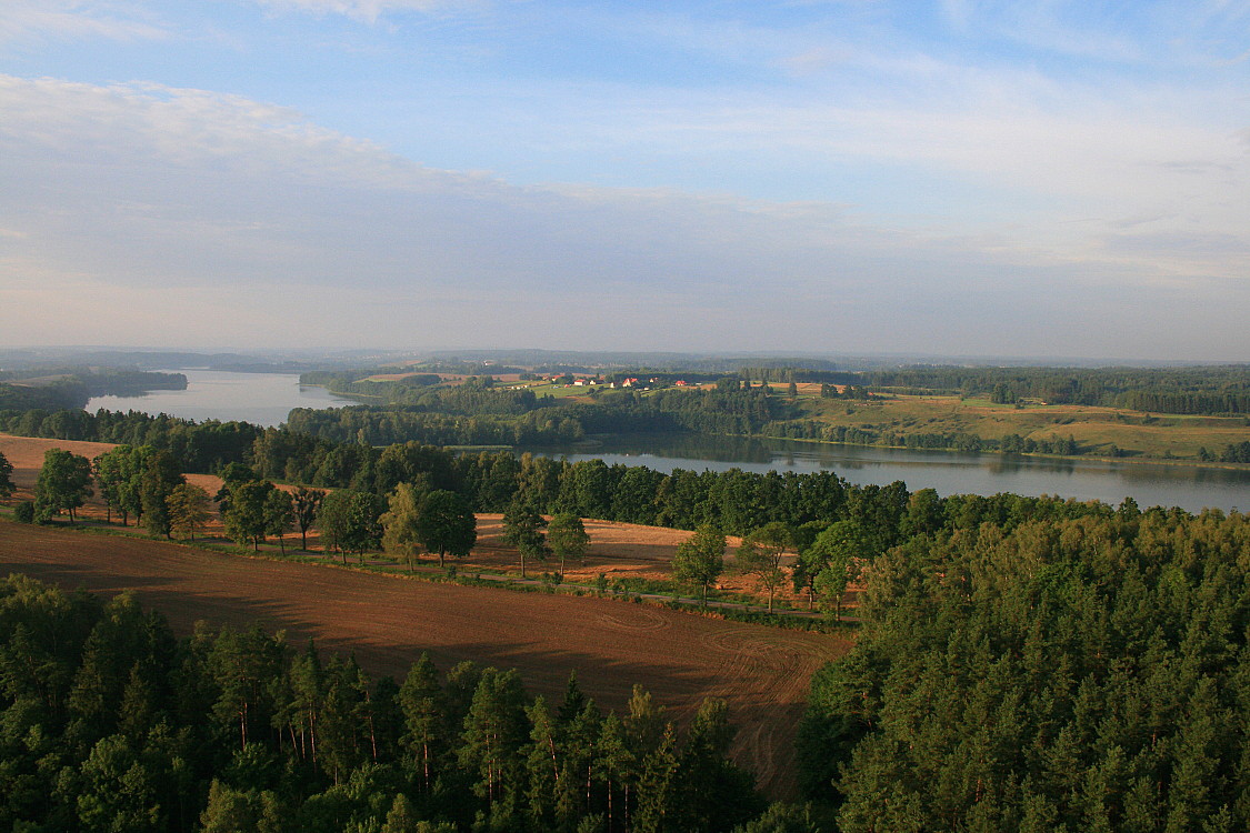 Niewątpliwą atrakcją na Mazurach jest możliwość zorganizowania lotu balonem na rozgrzane powietrze nad mazurskimi jeziorami. Loty pilotuje jeden z najlepszych pilotów balonowych w Polsce Dariusz Brzozowski, który lata również w Australii. Siedzibą firmy jest niewielka wieś Krzyżany, gdzie przechowuje swój sprzęt i przygotowuje się do lotów. Miałem wielką przyjemność wielokrotnie latać z tym pilotem nad jeziorami na Mazurach i zawsze było to niezapomniane przeżycie. Loty odbywają się wczesnym porankiem, lub pod wieczór, kiedy temperatura powietrza spada i balon na rozgrzane powietrze może unosić się dłużej w powietrzu. Pilot przyjeżdża po turystów do miejsca ich zakwaterowania i odwozi po imprezie. Przy dobrych warunkach pogodowych balon może się wznieść nawet na ponad 600 m nad poziom morza. Po zakończeniu podniebnej przygody następuje wzniosła chwila odkorkowania szampana- zwyczaj praktykowany od XVIII w. kiedy to jeden z pilotów po lądowaniu na cudzych plonach “wykupił” się butelką szampana. To co jest najbardziej niezwykłe w podniebnym locie, to niezwykła cisza, która panuje w górze, większość z uczestników daje się urzec tej niezwykłej chwili i milczy, co tylko potęguje niezwykłe wrażenia. Nie przeżyjecie tego nigdy we wnętrzu samolotu, gdzie wszystkie doznania zepsuje wam warkot silników! Obejrzyjcie fotorelację z jednego z takich lotów nad mazurskimi jeziorami, który odbyłem kilka lat temu. Nasze biuro